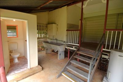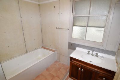 A practical bathroom with combined shower and bath. Separate water closet and external laundry.