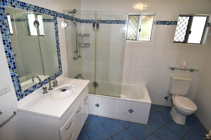 The main bathroom is practical with a combined bathtub and shower, and plenty of storage with the single vanity and separate linen cupboard.