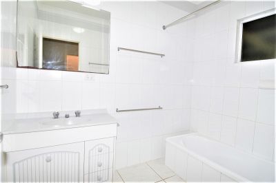 Practical bathroom with combined bath and shower. Separate water closet and internal laundry.