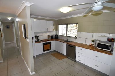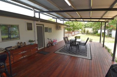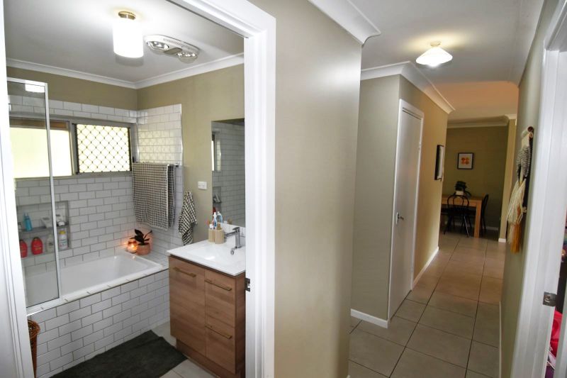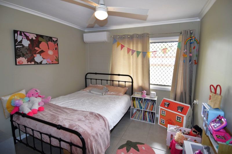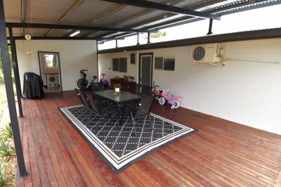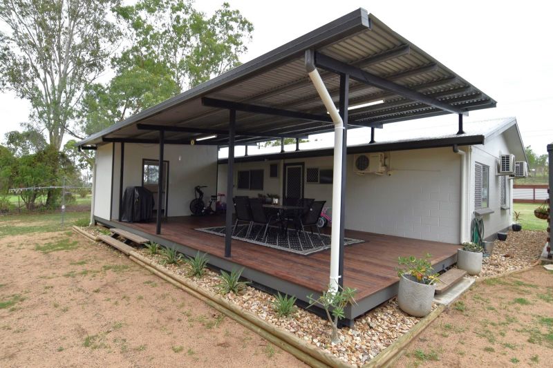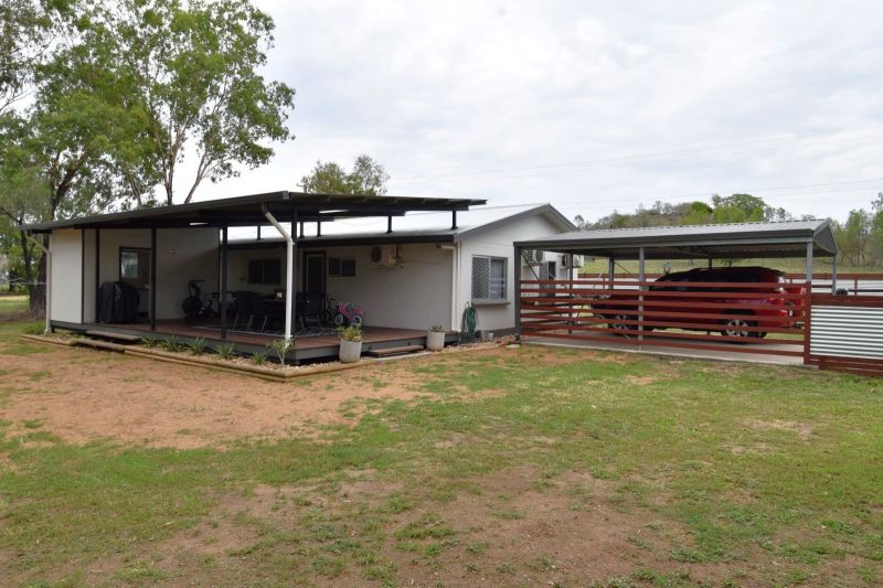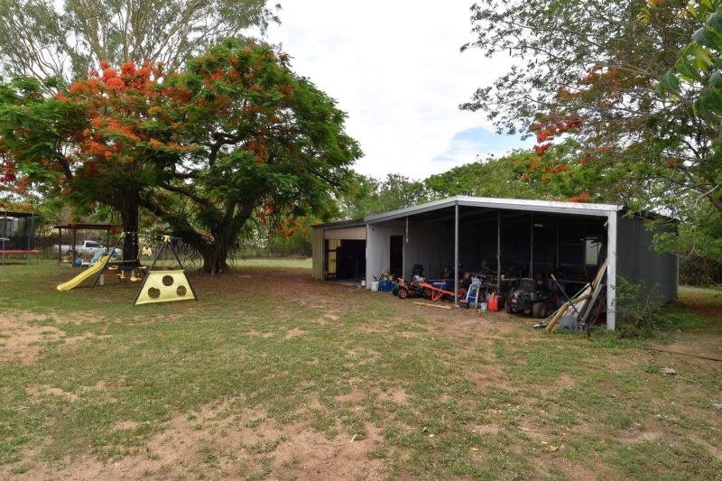 Set over an established 5,233sqm fully fenced allotment, the sprawling timber and corrugated iron front fencing is the perfect invitation via the driveway to the double carport and house entrance. Multiple gates allow direct access to the rear of the block and the 3-Bay powered shed. Vibrant Poinciana trees draped with dragon fruit hold stately positions in the rear yard and the equipped bore, water tank, and town water will ensure your piece of paradise is lush year-round.
